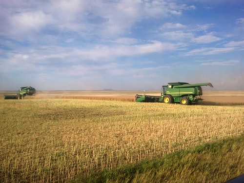 We continue to cut canola and wait for the wheat to ripen. The warm weather helped us have a longer day in the field. For the first time we have been here, we worked quite awhile past sunset.