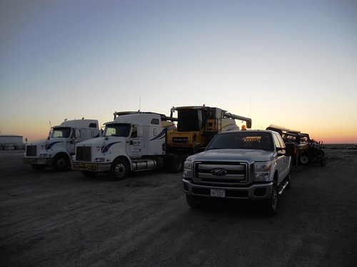 Here is part of our convoy parked near Perryton, Texas. The crew was up bright and early on Thursday morning so we could finally reach our destination and start cutting wheat. Although this picture does not give it any justice, we were able to enjoy a beautiful sunrise as we continued our journey south.
