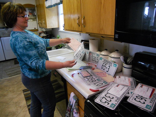 Not only is this time of year about equipment preparation but there is also the paperwork aspect of harvest that cannot be forgotten. This year we had to put new license plates on all the trucks and trailers. Along with that we also had to ensure there was the proper registration and insurance in all the vehicles. Above: Mom sorts through all of the registration paperwork at home before we leave.