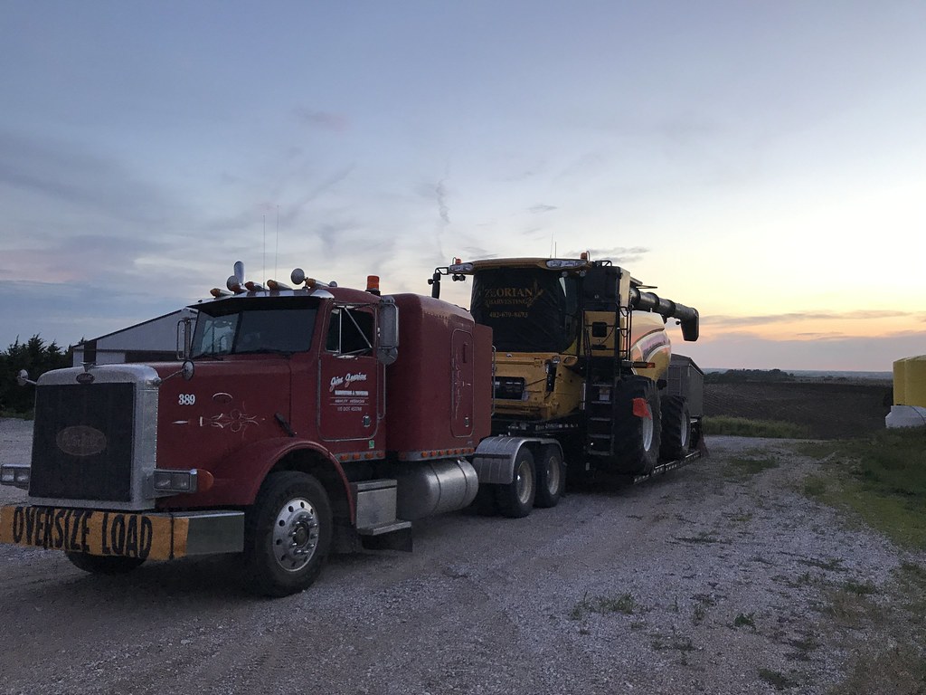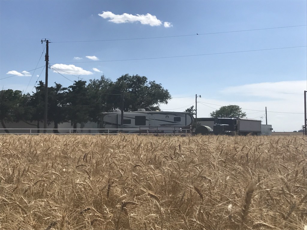 It’s always a good feeling after you’ve worked so hard to get to the point of driving out of the yard and pointing the trucks south. The transition of “home, home” and harvest has been solidified, and there’s no going back. The feeling of arriving at your destination, however, is even better! This is especially true if you made it there with little to no issues. We had no issues. Oh…wait…I’m wrong. There was one wheel seal on the Pete that started leaking. Jim noticed it on Monday morning just as we were getting ready to leave Hays, Kansas.