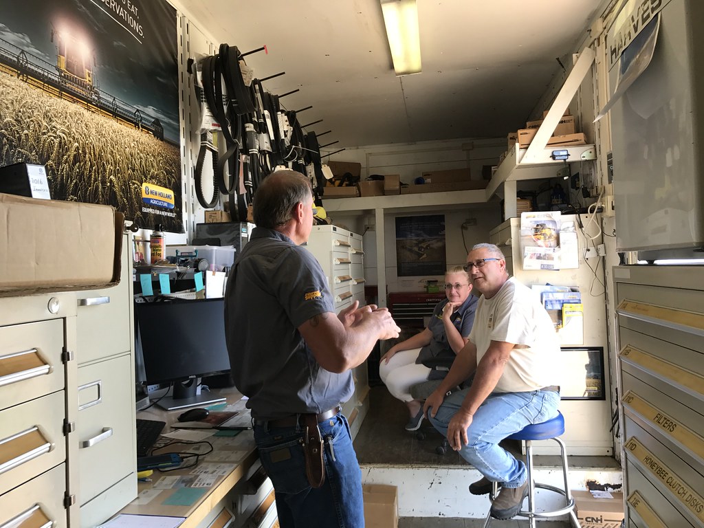 Jim’s been tinkering on trucks and the Yellow Beast – mostly just to stay busy (I think), but I know there were some things he put off at home hoping he’d have some time before we got started down here. After taking the first test cut, he realized he had a minor issue with the air conditioning in the combine, so it meant a trip to the New Holland Harvest Support trailer. And… a good excuse to hit the Amarillo Walmart.