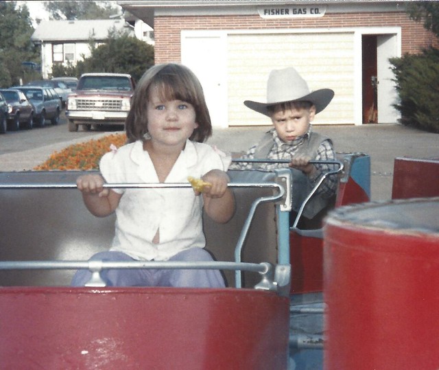 We must have had a rain delay. Janel Schemper enjoying a county fair ride in a small Midwest town along our harvest route in the 1980s. Photo by Carlene Schemper.
