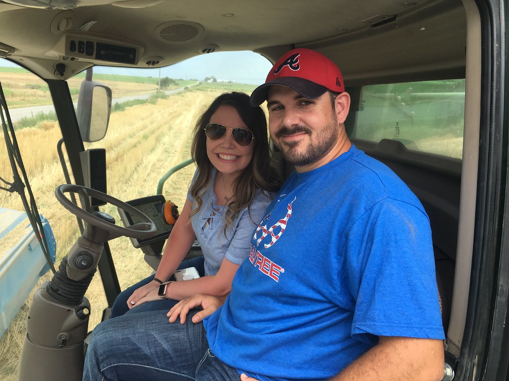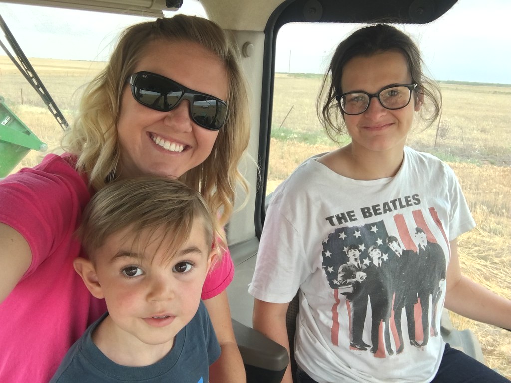 Watching the tractor and grain cart return from the field. (Photo credit: Laura)