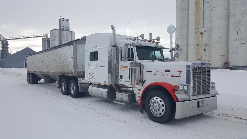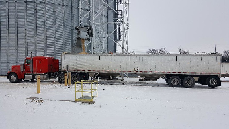 I often get the question of what do you do when you’re not harvesting? I didn’t really ever take a break from working during the harvest off-season this year. I stayed super busy hauling grain five to six days per week. I’ve started as early as 4 a.m. and quit as late as 9 p.m. and had decent luck overall. I have had to wait in some long lines and deal with lots of moisture on the highways when it was foggy, snowing or raining. There were occasionally some trains sitting in the way, too. Typically, the days are 7 a.m. to 6 p.m. though. I did get a few days off due to snow. We did have plenty of moisture this past winter and spring.