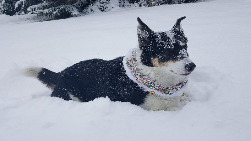 Miss Moo loves playing in the snow and having a snow day at home! Photo by Janel Schemper.