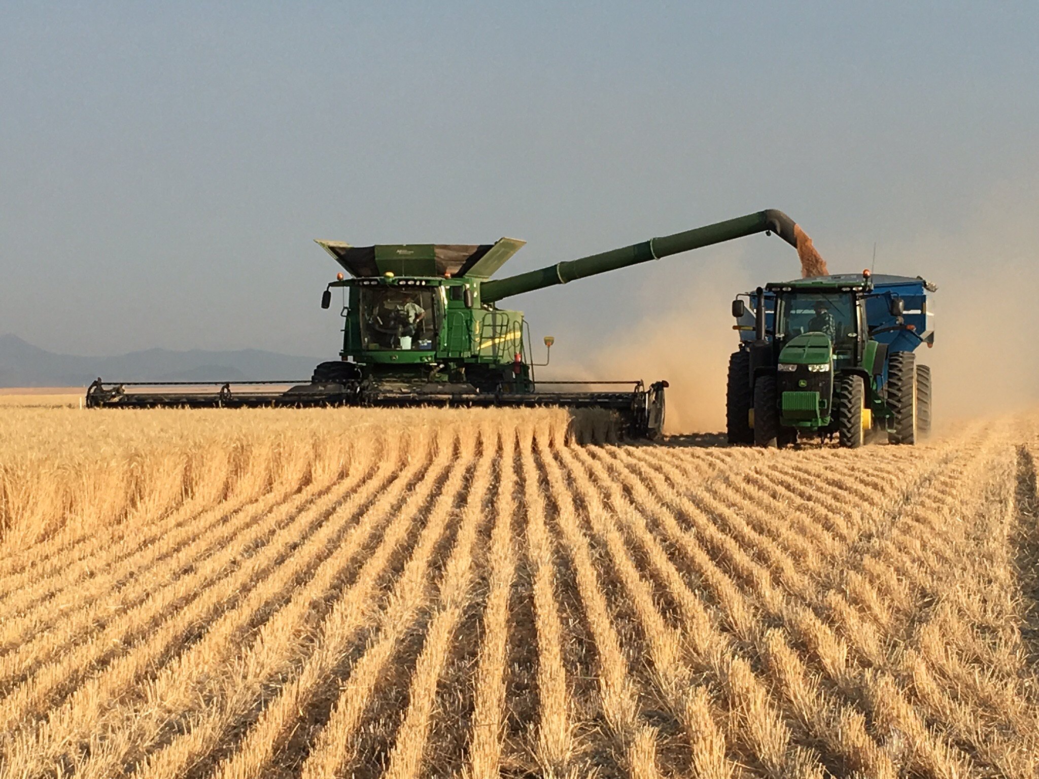 JC Schemper harvesting wheat in Montana 2018. (Photo by Tricia Schemper.)