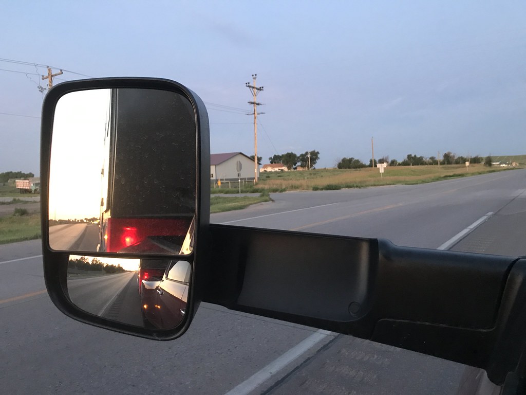 Today began extra early because of the Sturgis Motorcycle Rally. The wide load could only travel the interstate through Rapid City between the hours of 5 a.m. and 9 a.m. We made it as far as Chadron, Nebraska, last night. Jim had his alarm set for 5 a.m. By the time we got the trailer house road-ready and he walked back to the “train,” we didn’t get on the road until 5:30. We exited from the interstate at 8:30—plenty of time to spare.