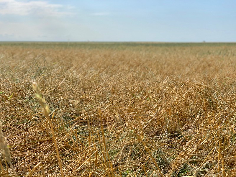 The unusually slow harvest progress has exposed the wheat to potential hail storms for a longer period of time this year than normal. Sadly, many acres were “harvested by hail” this week. It highlights why farmers hire crews to quickly harvest ripe fields before catastrophic weather events like this occur.