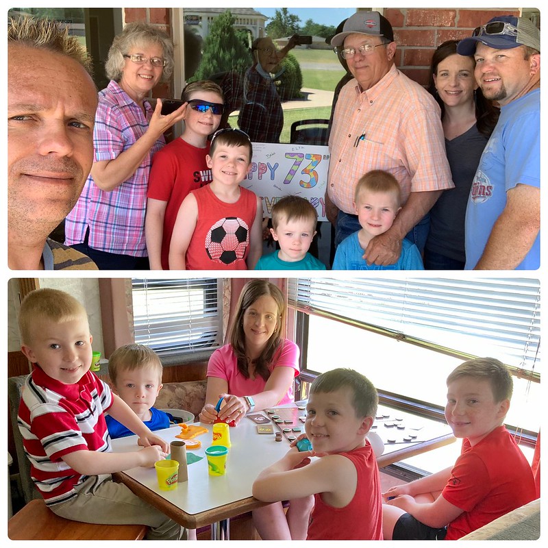 Despite Covid-19 keeping us on the other side of the glass, the crew helps one of our retired customers celebrate an incredible 73 years of marriage! This is just one example of the close friendships we have developed over the years. Brenda and the boys play games inside to keep cool on a hot Kansas day.
