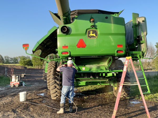 Make no mistake, washing a combine takes a lot more time than washing a car. It’s difficult to ever finish in one day, and there are some very hard to reach places. A big thanks to my friend Jeremiah that volunteered to help me take on this wet, dirty job.