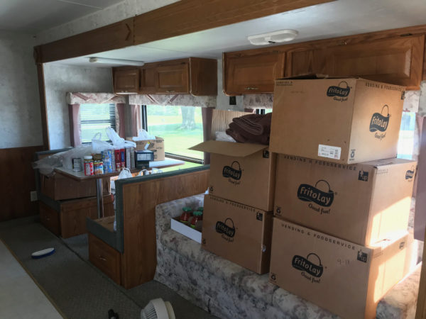 While it takes a lot of physical work to load equipment, the real unsung heroes are Vernelle and Brenda that do the bulk of trailer house packing. Years of experience and extreme organization help, but the detailed lists of what to bring and where it all goes takes an enormous amount of time—and even more so in a brand new trailer. Hopefully a big time saver this year is the washing machine you can see hidden in the closet to the right behind the stack of cardboard boxes.