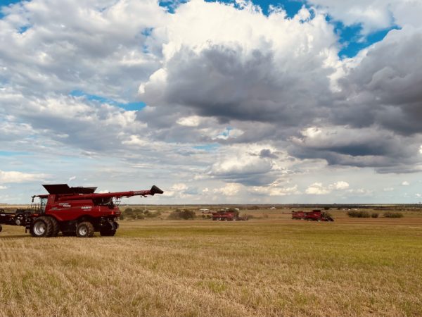 As I relayed before, we were able to do a 50-acre field, then we sat. Last Thursday, we started going again, and then we sat the next day. Sixteen percent moisture held us down, and then today we were able to get going again at around 4 p.m. The fields we’ve been cutting in the last two days have been between 13.5 and 14.5% moisture, a little better bushel average of about 45 to 50 bushels per acre and around a 60-pound test weight. When added to together, the bits and pieces we’ve been able to do have amounted to about a thousand acres so far.