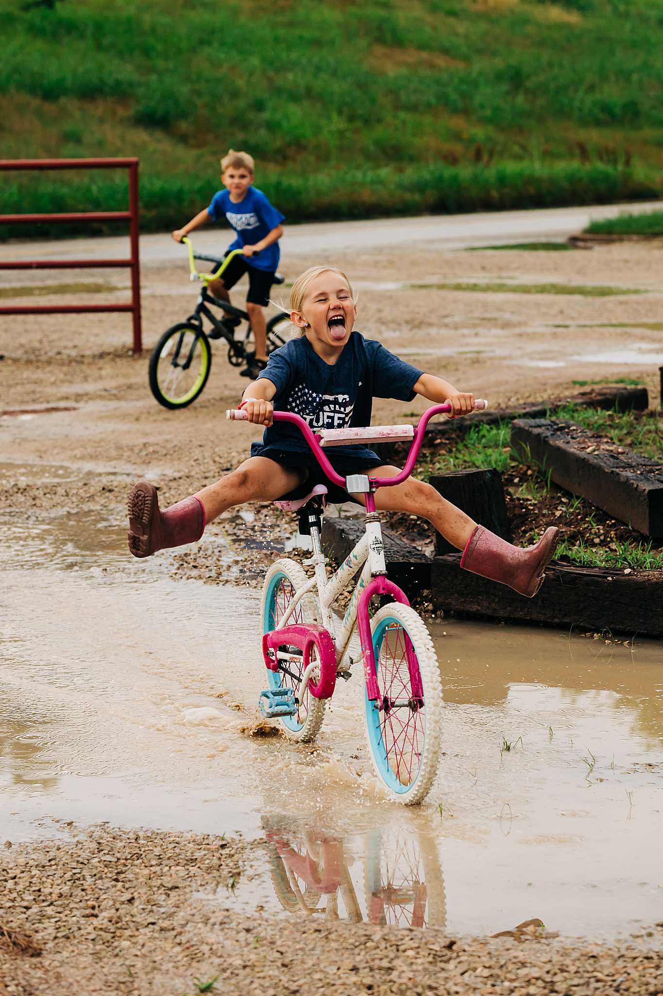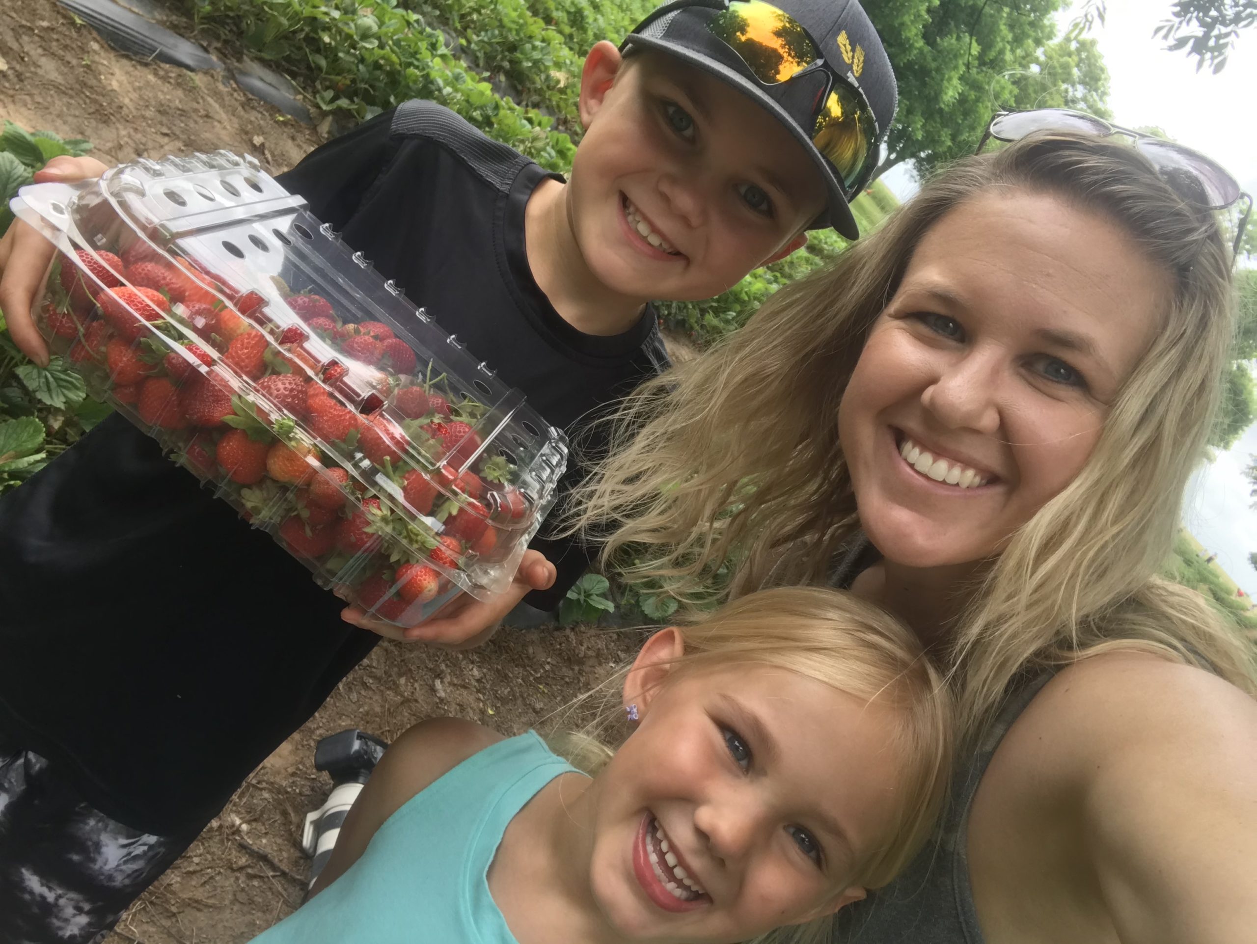 One of the ways we’re staying sane, in between daily responsibilities, is leaving the “cabin,” also know as the camper house. We’ve been swimming, visited the local farmer’s market and strawberry patch, hunted fossils and visited a petting zoo, to name a few. The best part is that we haven’t had to do all of the activities alone. Over time, a network has been formed through being on the trail, US Custom Harvesters, Inc. and HarvestHer. The road can get lonely at times when away from friends and family at home, so it’s great that we sometimes can surround ourselves with friends on the trail. Some of the families we see once a year at stops or events and others we run into multiple times on our march north.