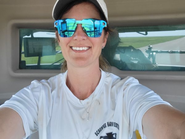 Miss Maggie Moo is a pro. I call her the boss lady. I wonder how many hours and acres she’s got now? This is her 13th wheat harvest.