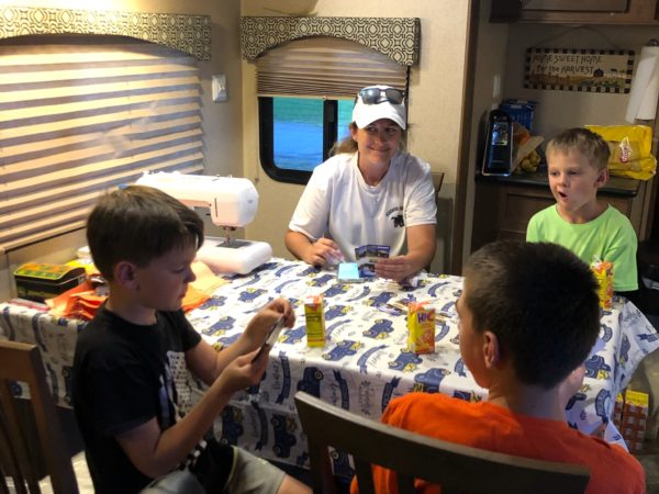 Sunder, Sage, Sterling and I played a lot of cards at first stop on harvest in southwest Oklahoma. I think Sterling won about every game. (Photo by Carlene Schemper.)