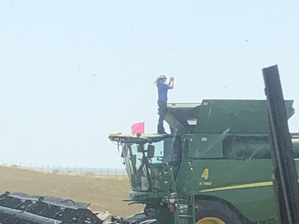My mom sent me this photo saying she was having fun watching me work. I was busy cutting wheat. (Photo by Carlene Schemper.)