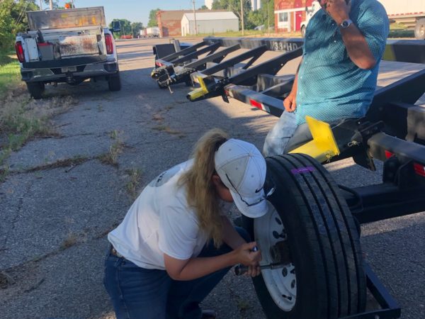 A hot 105 degree day spent traveling caused one blown out tire on a header trailer. Also, Happy Birthday Dad on June 22. We spent the day cutting wheat! Photo by Carlene Schemper.