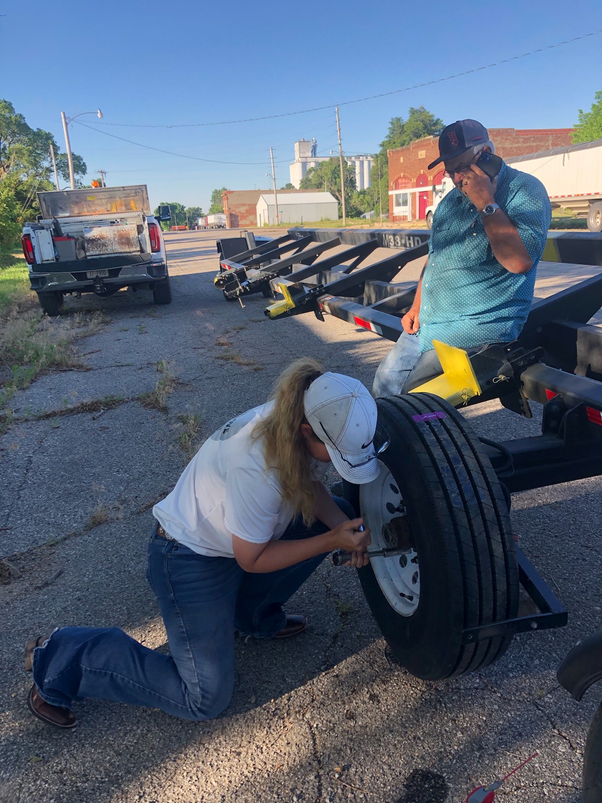 A hot 105 degree day spent traveling caused one blown out tire on a header trailer. Also, Happy Birthday Dad on June 22. We spent the day cutting wheat! Photo by Carlene Schemper.