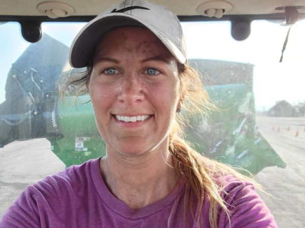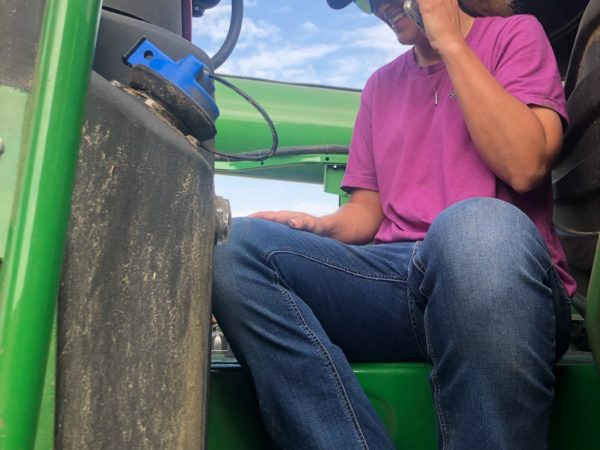 I am busy fueling the combine and on a business call. (Photo by Carlene Schemper.)
