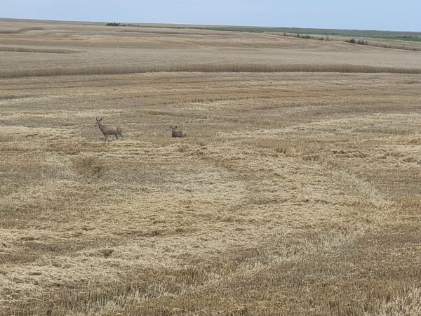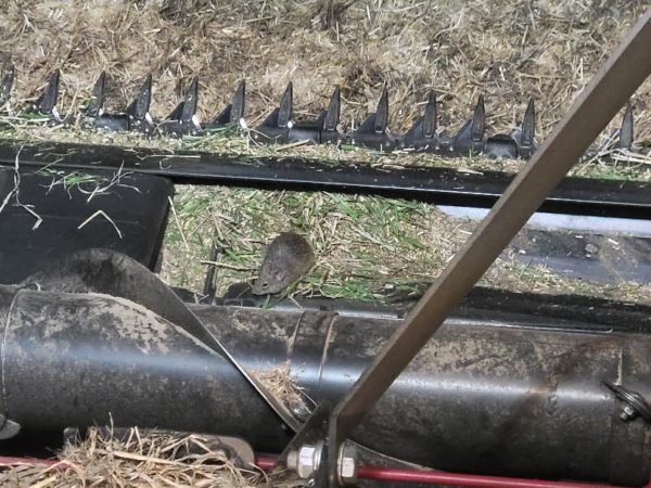 This was at Frederick, Oklahoma. I was cleaning out my MacDon header and a rat was right there. I got surprised and naturally screamed like a little girl, laugh out loud.