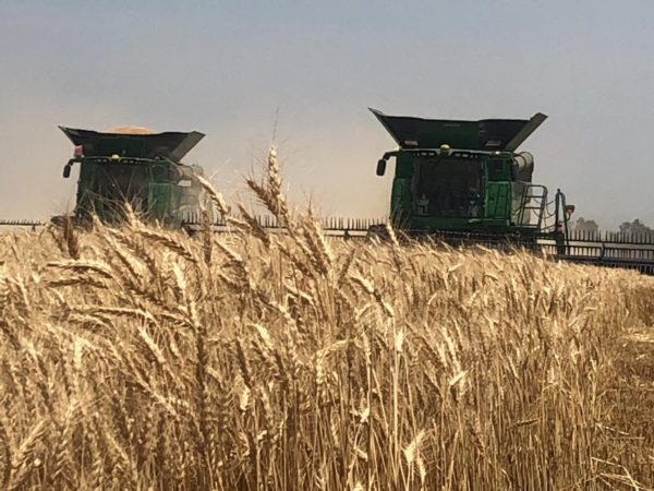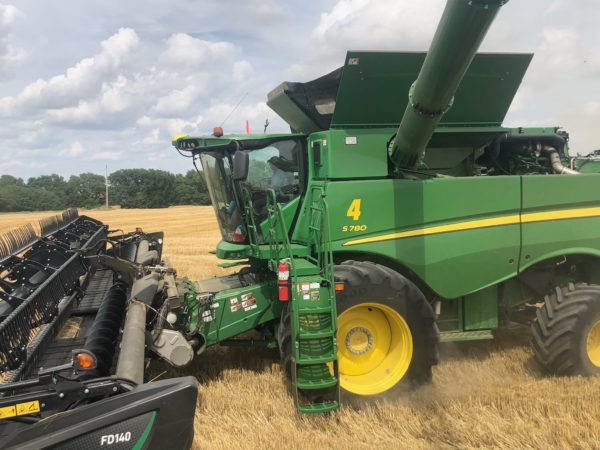 Kansas had a cool and wet spring and the wheat evidently liked it. Here east of Dodge City the wheat is making 80 to 100 bushels per acre and the test weights have been 61 to 64 pounds per bushel. This is the best wheat crop I’ve ever cut here. High yields and high quality wheat is keeping us busy all day long. The yields are well above average here no doubt about it. When we first arrived the straw was a little green yet. Fungicide applications keep the plants healthy and alive and ripe wheat can have green stems due to it. Also, fungicide keeps away disease and rust. Applying nitrogen improves protein levels. There isn’t a weed, cheat grass or rye in the fields I’m cutting. I love cutting clean wheat. Having an outstanding wheat crop usually depends on the farmer and how well they take care of the land. Some do such an outstanding job of farming and it shows.