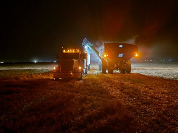 A beautiful evening to harvest wheat on July 3. We worked late because we had decent conditions including wind. We shutdown after midnight.