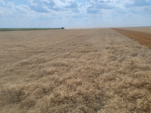 I am full and waiting on a tractor and grain cart to arrive. I didn’t have to wait long. I enjoyed taking a few minutes to get out of the combine and check out the wheat field.