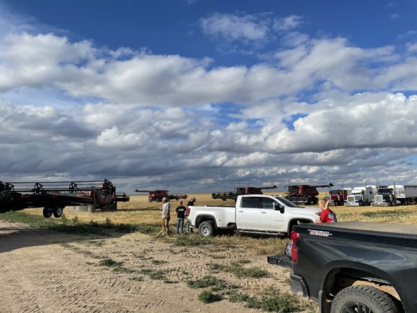Gary and Rhonada finally moved up to join us this afternoon. Rain delayed progress for quite a few days in Perryton, Texas. We’re glad to see them roll in since the six combines here won’t be able to move right now.