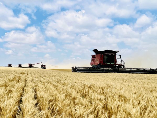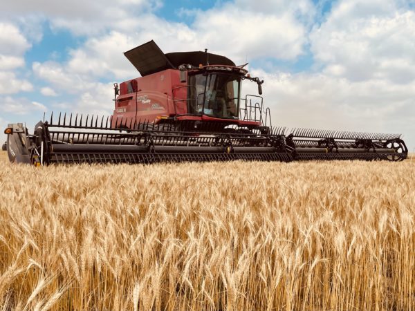 We felt a little relief this week wrapping up our stops in Anthony and Pratt, Kansas. Six machines pulled into Tribune, Kansas, Tuesday and we started on one field Wednesday before running into wet wheat. The service isn’t the greatest out here, so I ended up out there with supper just as all the machines were being parked. The wheat is averaging 30 to 60 bushels per acre and the moisture has been all over the board, between 12 and 16%.