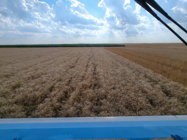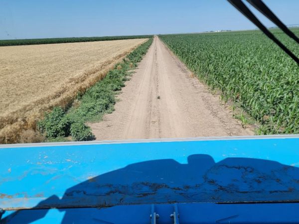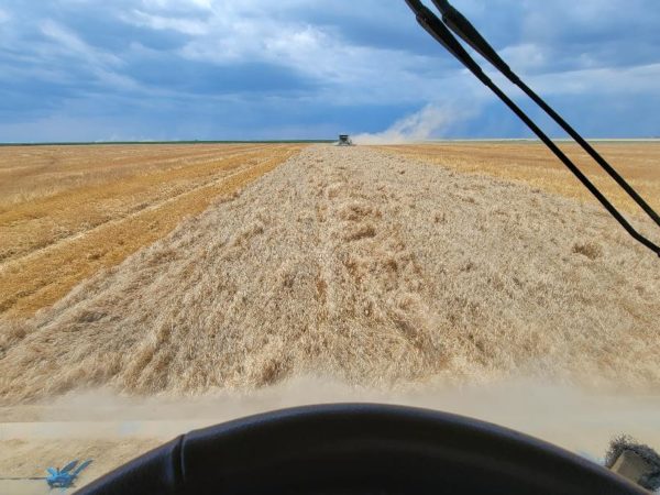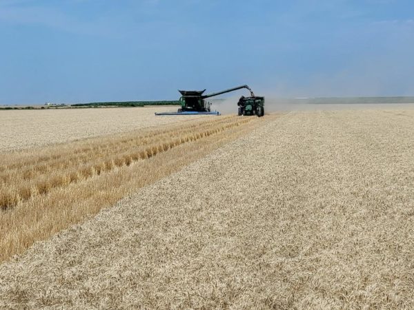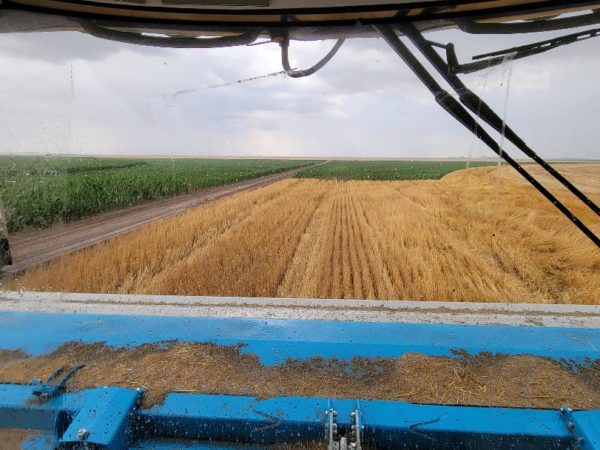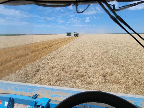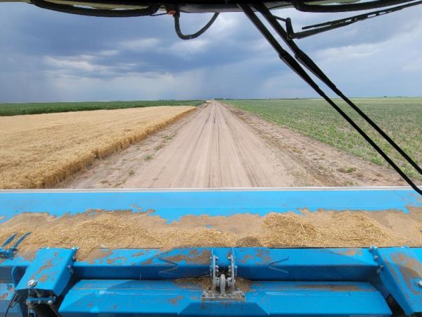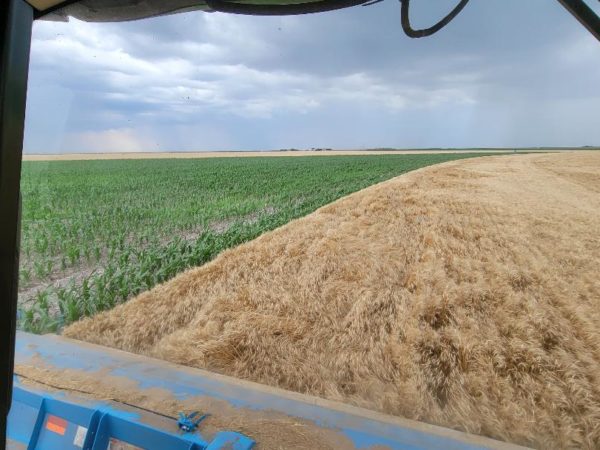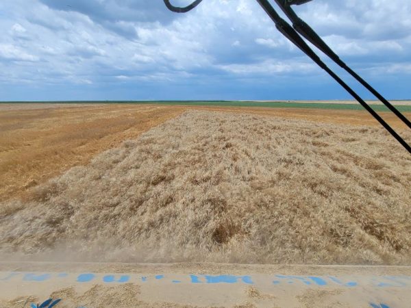 The wheat has been averaging around 60 and 70 bushels per acre. The test weights have been less than 60 pounds per bushel and with every rain the test weights keep getting worse. The protein has been staying around 12 and 13%.