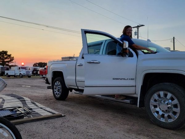 A beautiful sunset at the campground and my mom washing her pickup windshield.