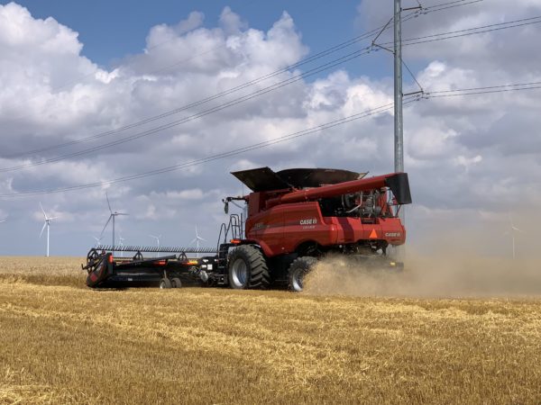 Apparently our weather was taking inspiration from the Wild West as well. Those hot and windy days my trusty weather app promised never show up. Unruly storm clouds continue to appear almost every evening, and farmers here also decide that taking wet wheat is better than a hailstorm taking it first. I’m not sure I’ve ever seen this large of an area harvest so much of their crop this wet. I do know a majority of it would still be in the field if we had waited for dry wheat.