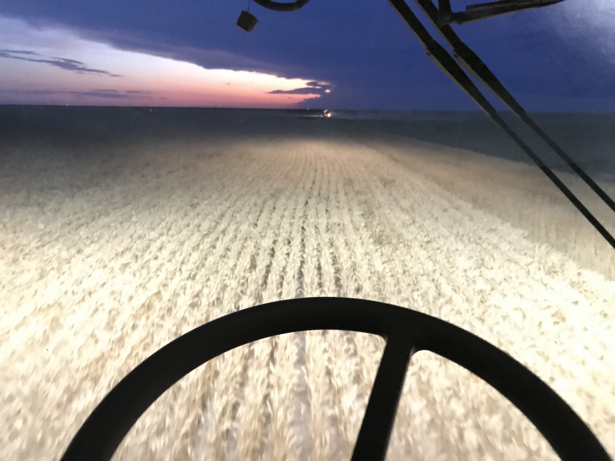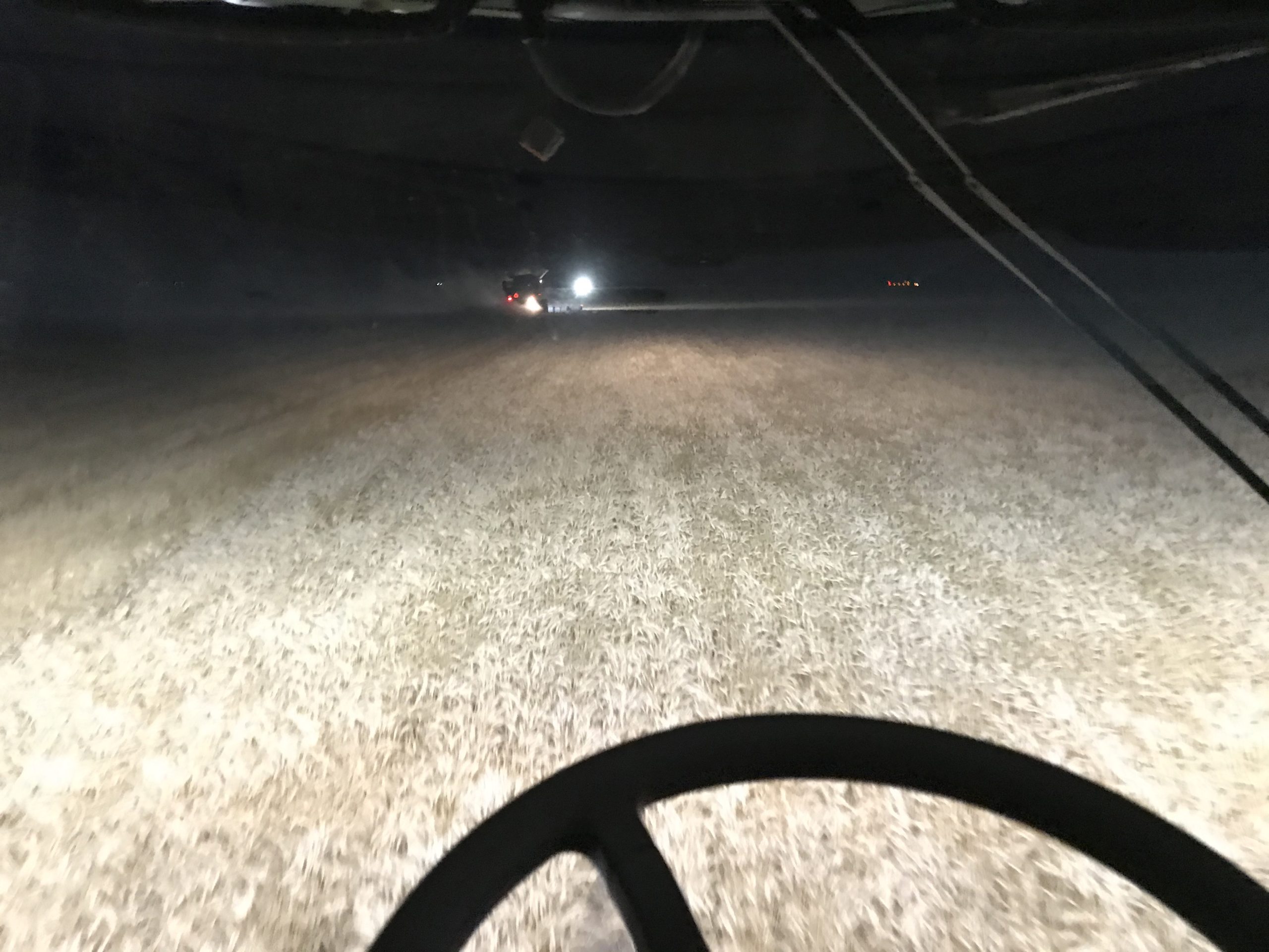 Yes, the day went well working together despite starting off just a little slow as we fought humidity and moisture, but we put in a big day until the rain hit. The cloud bank popped up on the horizon late in the afternoon, in the northwest, but we didn’t have a huge chance of rain. However, as the hours wore on, the cloud came closer and it became clear that we weren’t going to miss it. As is customary with harvesting, we cut up until the rain fell and then made a mad dash to the trucks. The moisture came hard, fast and cold and we were nearly soaked by the time we reached the pickups. Silt roads quickly turned slick and it was a bit of an adventure getting out of there but we all made it out safe and sound.