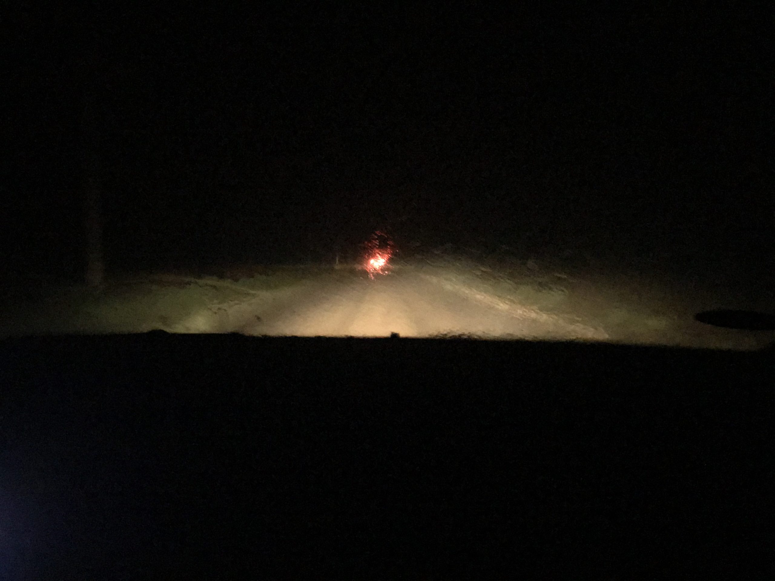 It’s pretty dark now. We have to get as far as we can before it hits.