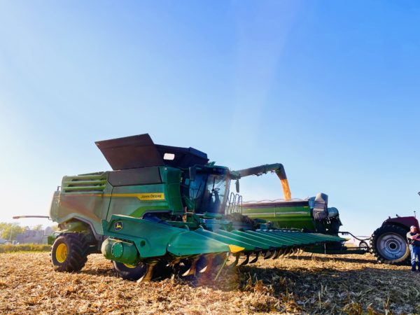 Whereas it wasn’t enough time to really get a feel for this large capacity machine, he was able to test its abilities in a field of corn by Round Lake, Minnesota. The X9 boasts the ability to max out at 630 horsepower, and hold 420 bushels of grain in the tank. The machine’s unloading ability is much higher than any other series machines at 4.6 bushels a second. Paul said the 16-row corn head impressed just as much as the combine itself. He said, “I haven’t run a corn head that’s better than a Deere.”