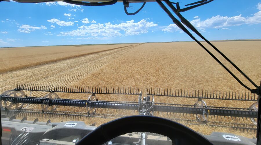 The past few days have been very hot and breezy with highs reaching 105 degrees. The heat and wind has helped ripen the wheat crop along. We’ve been staying busy cutting wheat but the harvest in this area is usually too short. I’d love to find more wheat here to cut and stay a little longer. When we finish here we’ll be going to the Dakotas and part of our crew will go to north central Montana. I love it up north. It is my favorite part of wheat harvest.