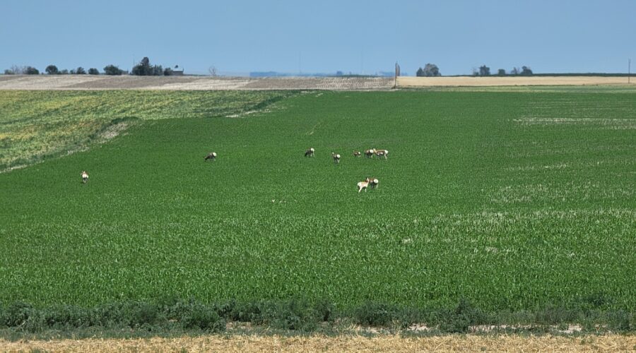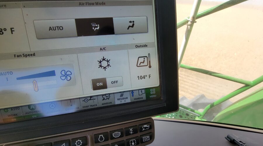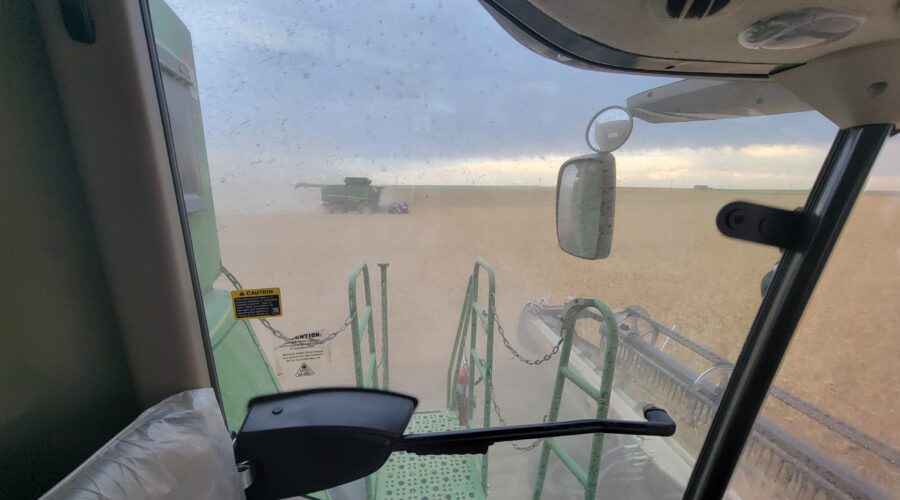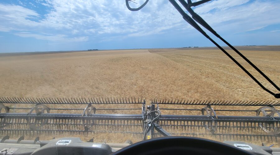 Western Nebraska—We traveled north to the Sidney, Nebraska area on July 4. I again had an uneventful holiday. I’ve spent almost every 4th of July of my life in the wheat field running combine. However, when we got here we did go straight to the field. We cut one load and then we had a couple of mild rain showers. When we arrived, the wheat was just borderline ready. There is still lots of green wheat around. The forecast is now hot and dry.