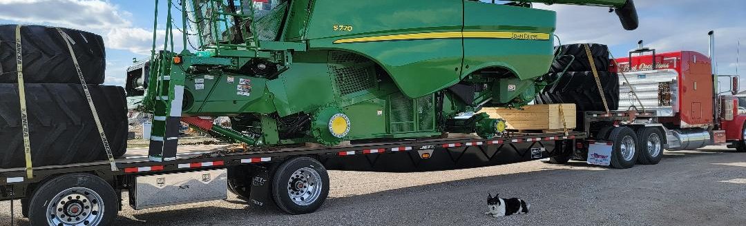 Moving north on July 4. I dislike hauling combines up the narrow highway from Tribune to Goodland. I wish it were wider.