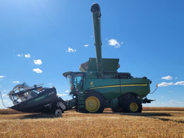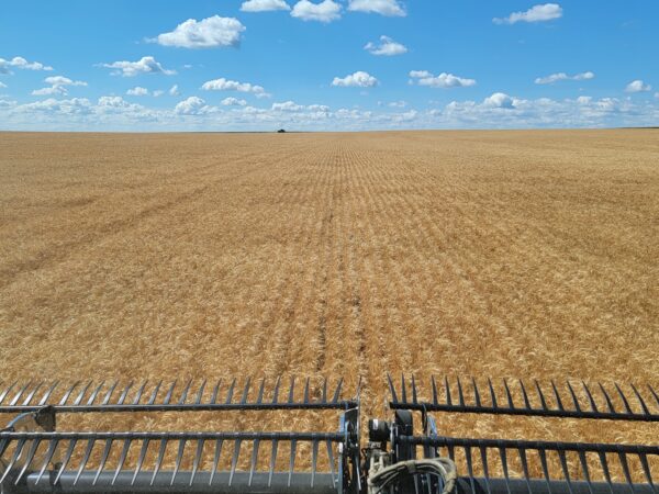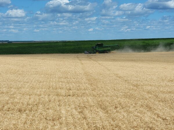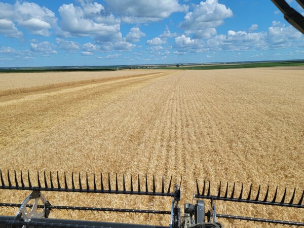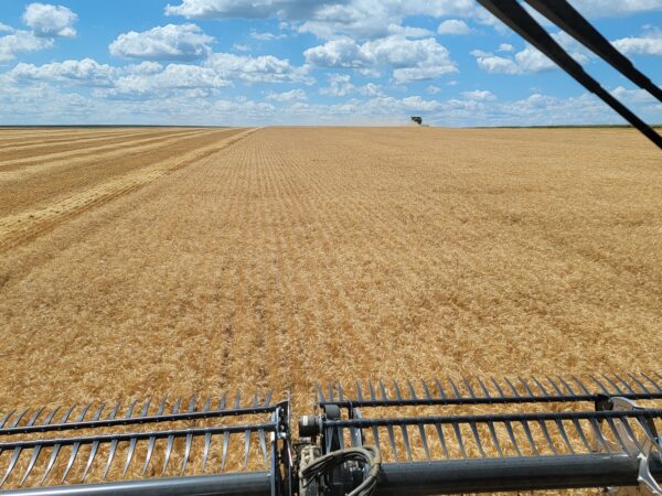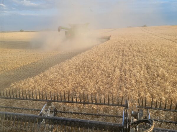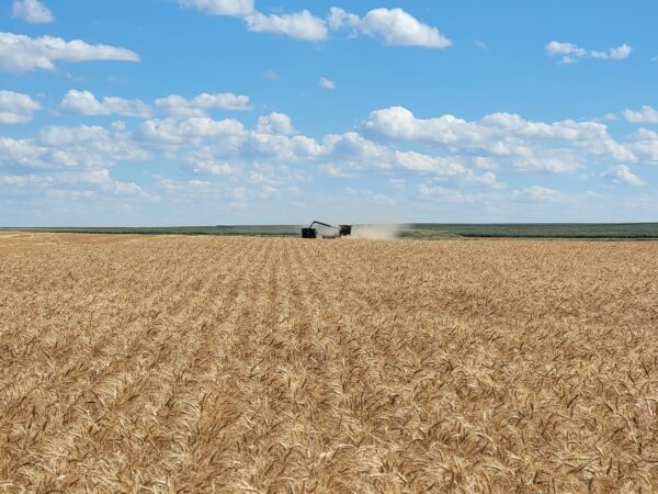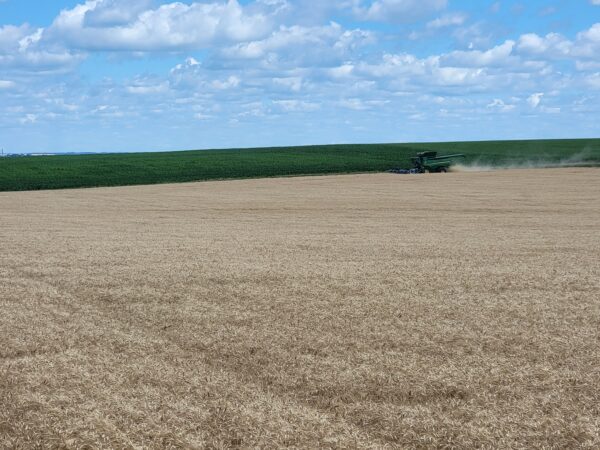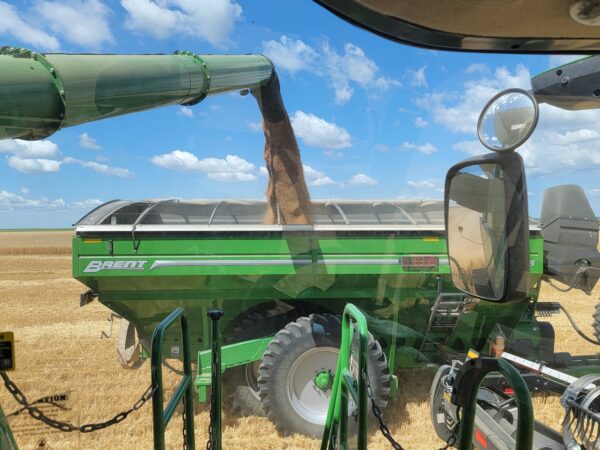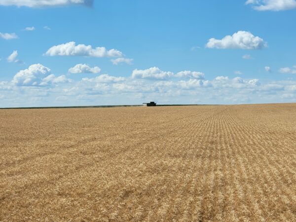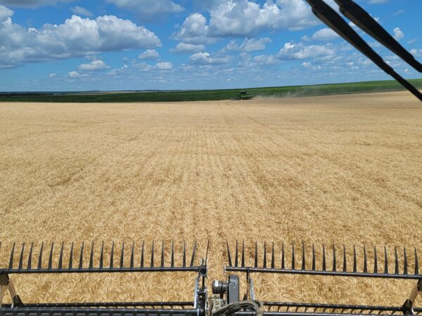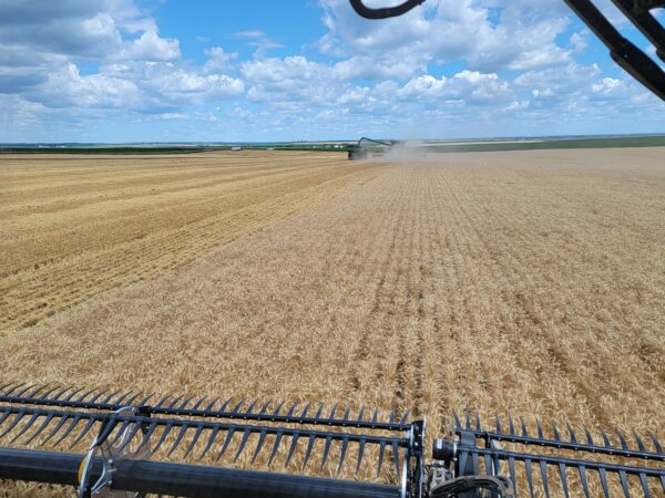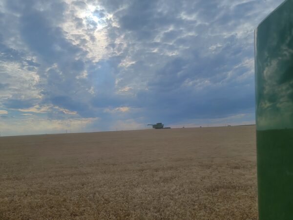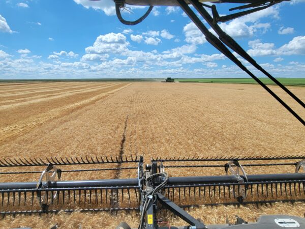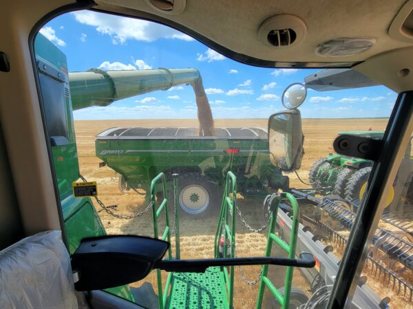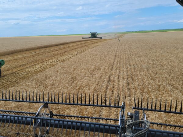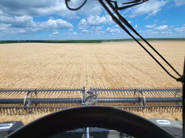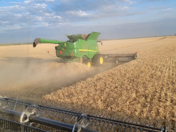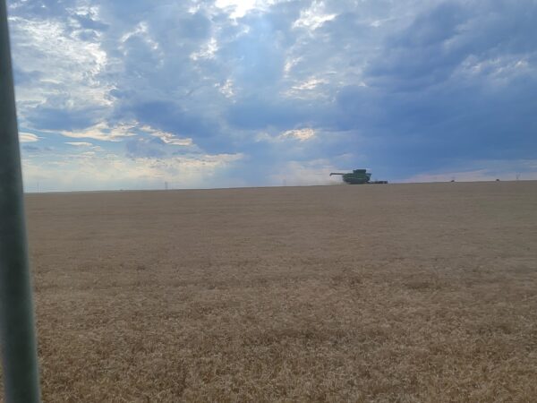 We’ve been staying busy cutting winter wheat but just finished. It’s now Aug. 1 and we are waiting on the spring wheat. We’ve had dry conditions as well as plenty of heat and wind and it’s really changing quickly. When we first got here the spring wheat was green but now it’s nearly ready to be harvested. We will sample spring wheat tomorrow and I hope it goes.