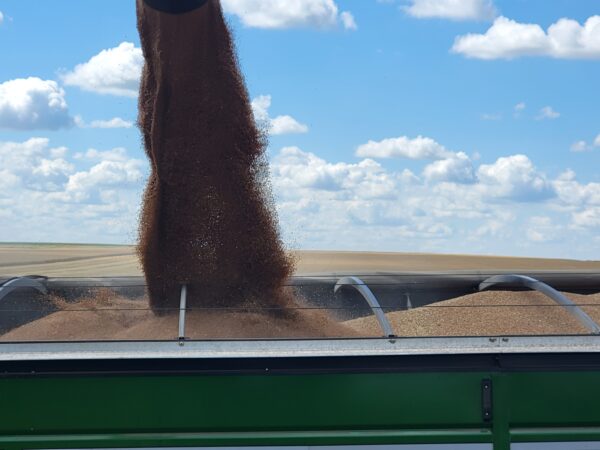South Dakota—The winter wheat has been excellent overall here north of Pierre. It’s been outstanding to tell the truth. One quarter we cut yielded 95.1 bushels per acre. The test weights have been 63 to 65 pounds per bushel and the protein 12 to 14%. The straw has continued to be tough and green and that takes horsepower, fuel, and time to thresh.