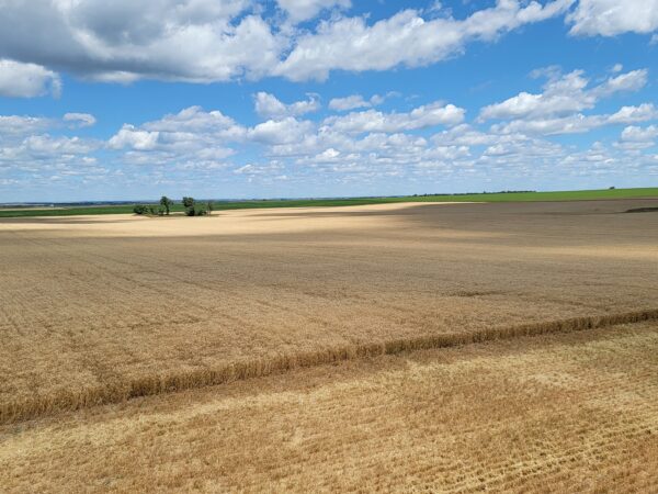 A field of wheat that was on the edge of a hail storm. It had damage on the southwest part of the field so we cut low to try to get it all.