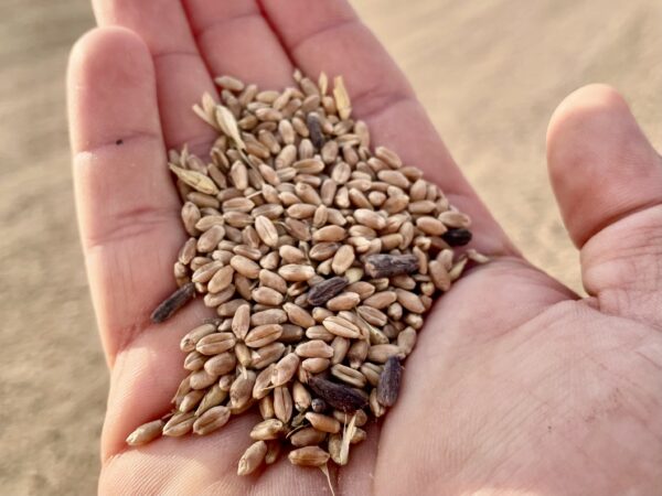 The purple “oversized imposter kernel” you see here is ergot. It’s not grain, just a fungal mass that causes headaches.