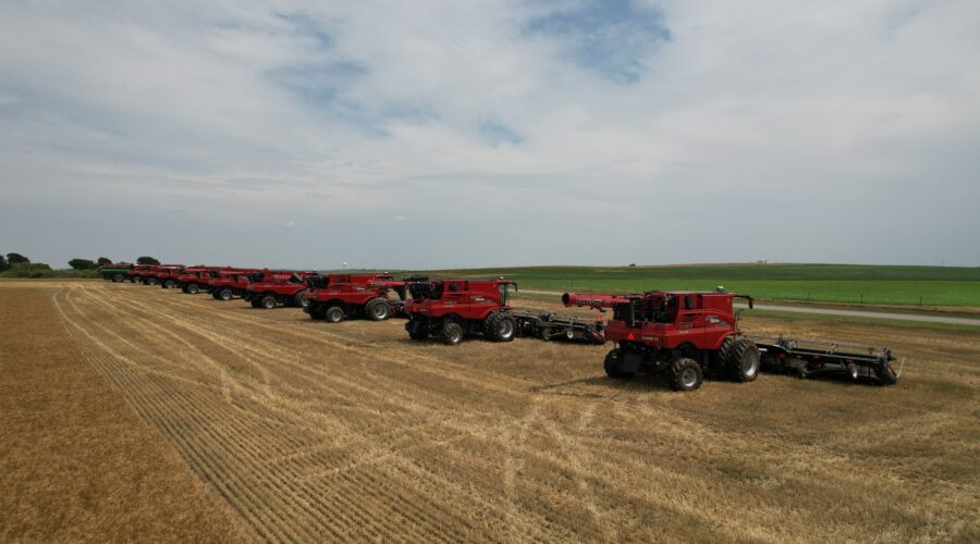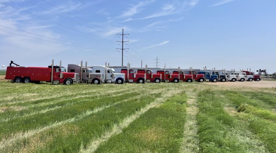 Upon arriving, our crew has been busy getting all our equipment ready to go. The fields aren’t quite ready to go, so the guys have been able to clean the equipment up nicely from our travels south. They also lined everything up and got some great shots of all the trucks and combines in the field.