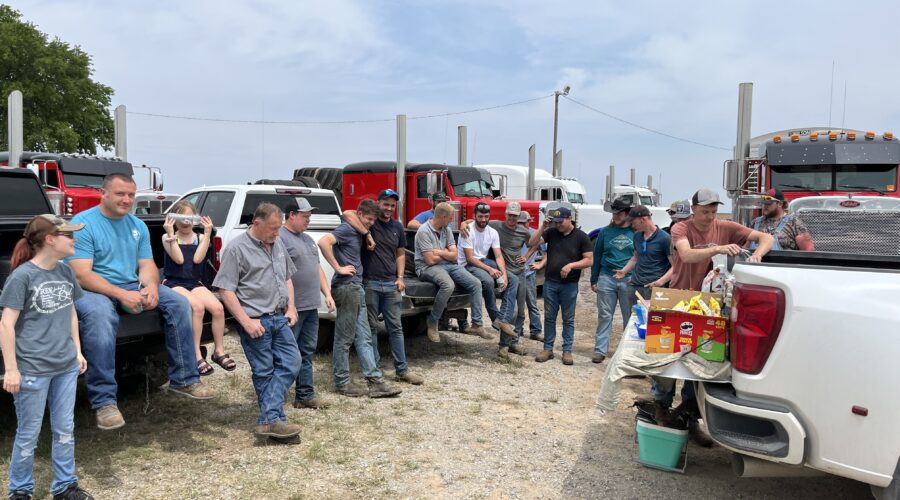 The day after USCHI’s Safety Day, Mac Don Industries Ltd. held a harvest kickoff breakfast in Vernon, Texas. I didn’t attend, but Paul, Gary, Zoey, and some of the crew woke up early to make the drive to Vernon. When the guys returned, Zoey was happy to report she won a shirt and hat through one of their giveaways, and the guys said it was a very informative breakfast. They said they learned a lot about the heads they will be running here soon.