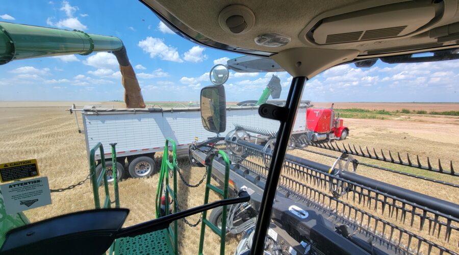 It feels great to be in the combine cutting wheat and just getting after it. I love running the combine and taking care of business. I grew up in this business and absolutely love it when it’s busy. We’ve been getting over some acres and getting the bushels hauled to town. The elevator lines get long in the afternoons but the trucks have been keeping up pretty well for the most part.