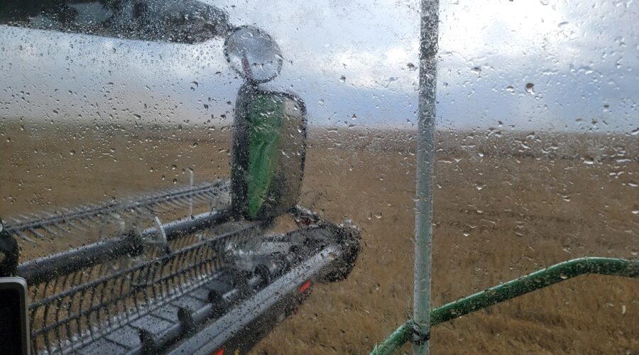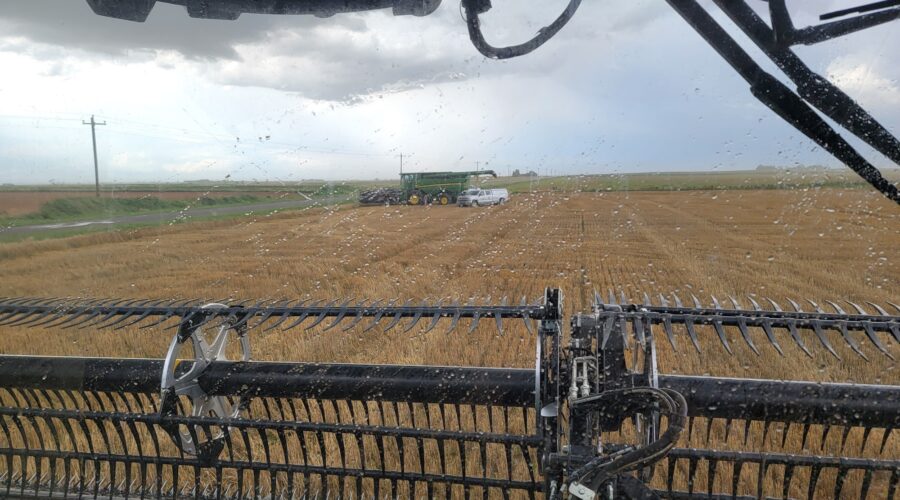 We’ve got big chances of rain today and tomorrow. However, after that we’re expecting mostly sunny days with highs in the eighties. I hope we can get this nice wheat crop cut here and get moved up the road to our next harvest stop. Best of luck to everyone and please be safe.