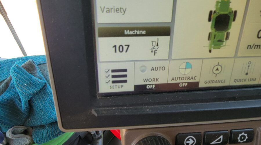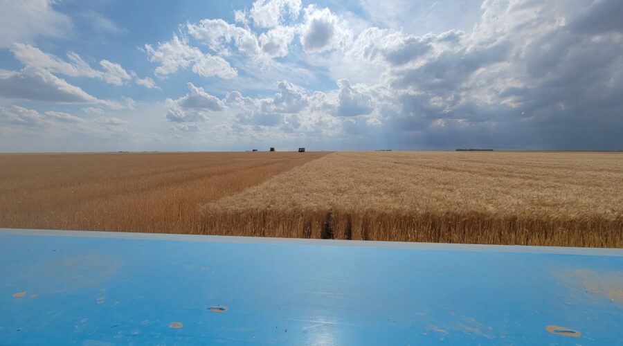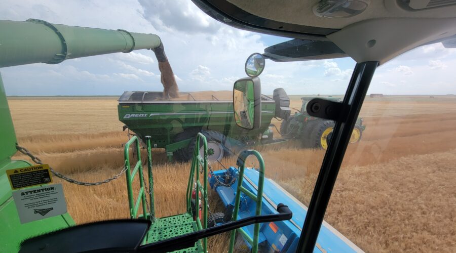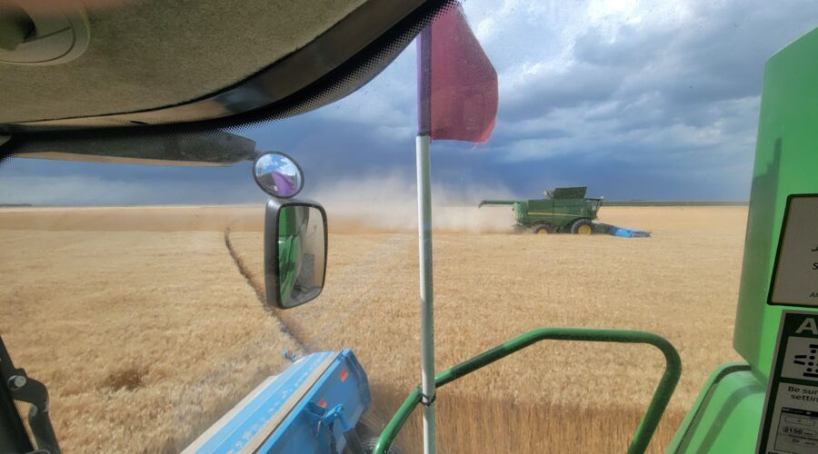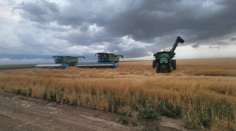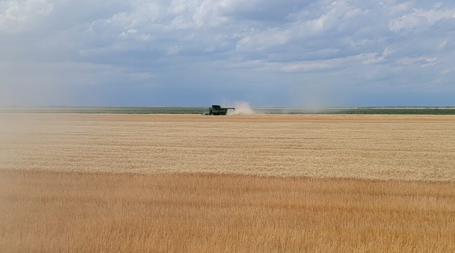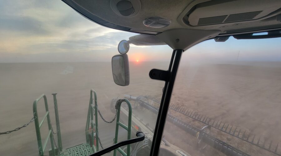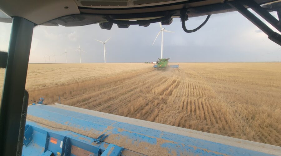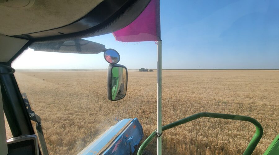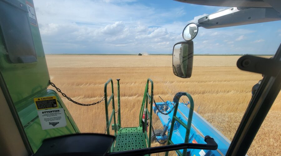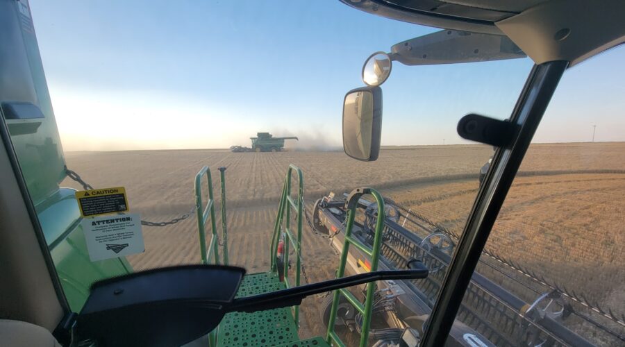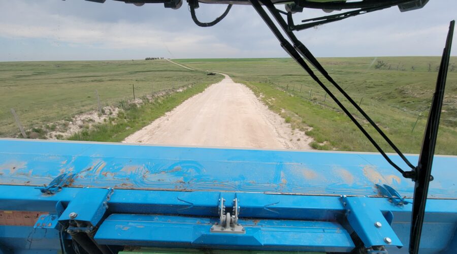 Western Kansas—We are getting over some acres. We have no mud here and good irrigated wheat to cut so really it doesn’t get any better than that. However, rain showers mess up our days. Sampling isn’t any fun. Trying to find dry wheat is a job too.