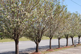 When watering mature trees with well-established root systems, water the entire area beneath the tree canopy. Water slowly so that water can saturate the soil. This is true for sandy and clay soils. “In sandy soils, water tends to head straight down,” says Harper. “Watering slowly allows for more lateral spread.” When clay soils are watered too quickly, water runs off the surface and will not reach tree roots