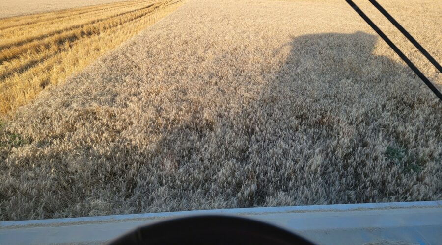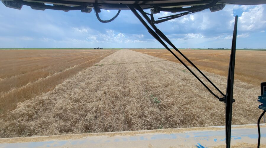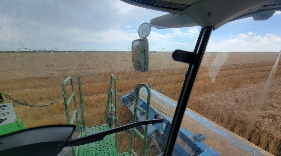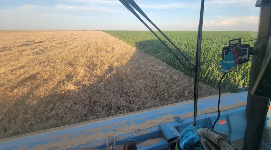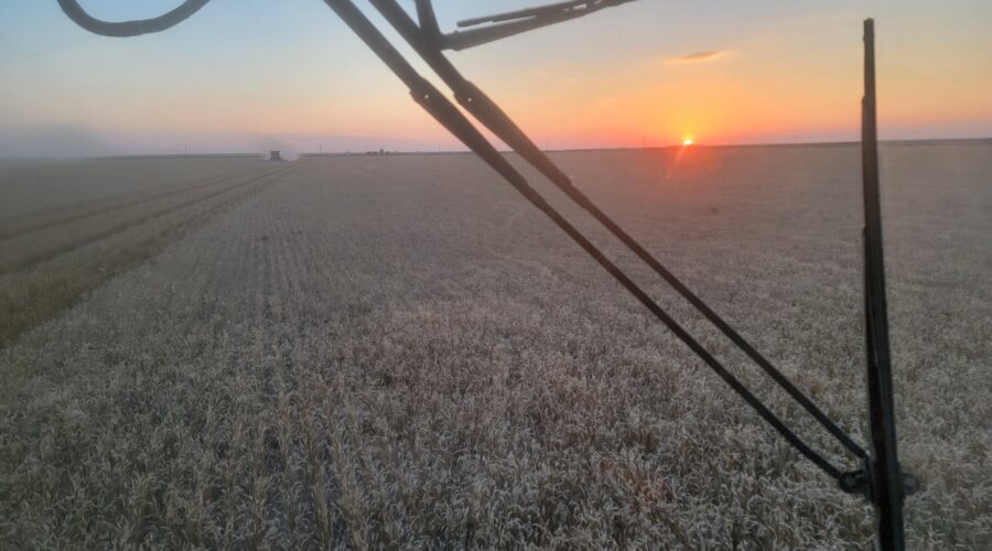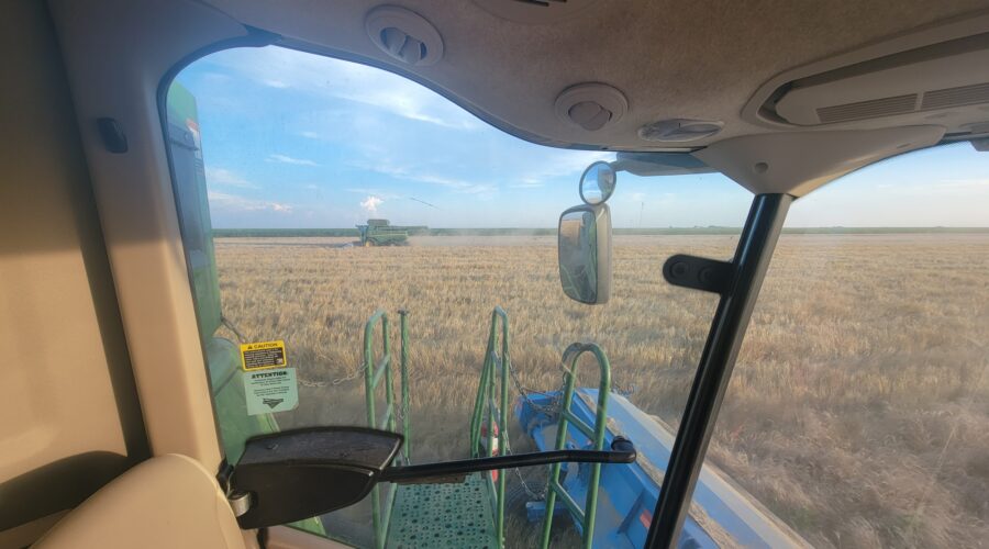 We’ve seen a few tough conditions including weeds and wheat laying flat on the ground in places. Kansas has a lot of weeds this year and they grow 3 to 4 inches per day. The rain delays caused the weeds to be even worse. However, for the most part it’s been standing well and there’s no mud. The heat helps with getting the weeds cut.