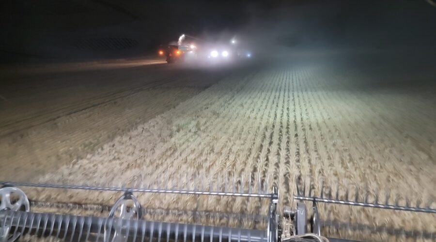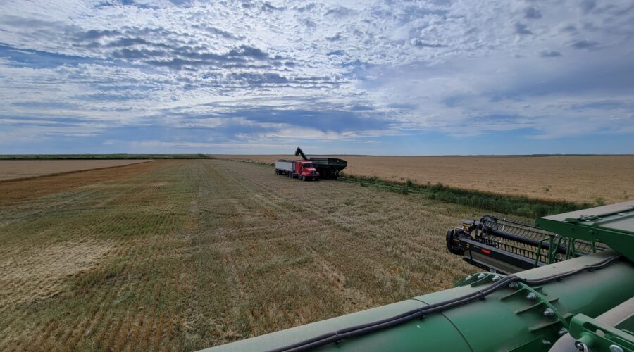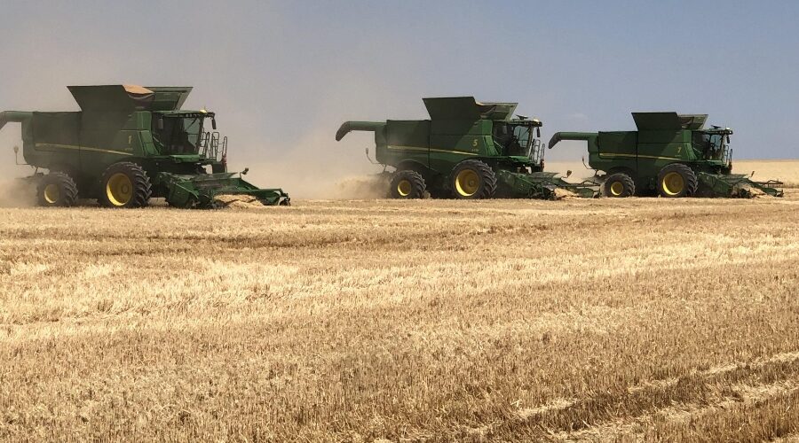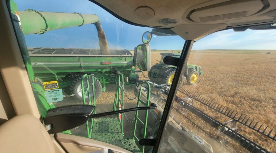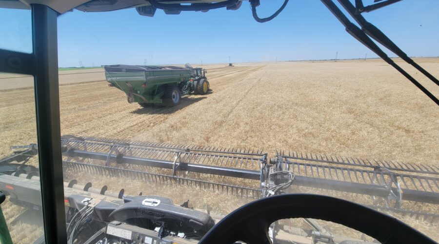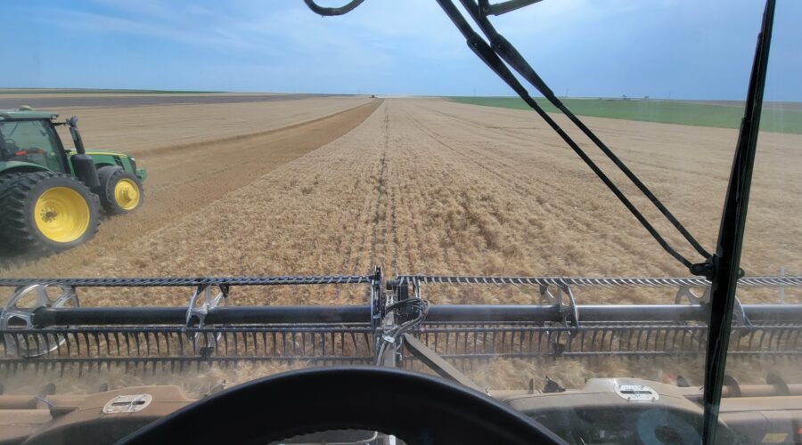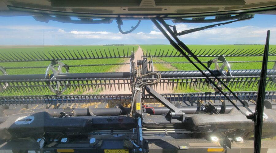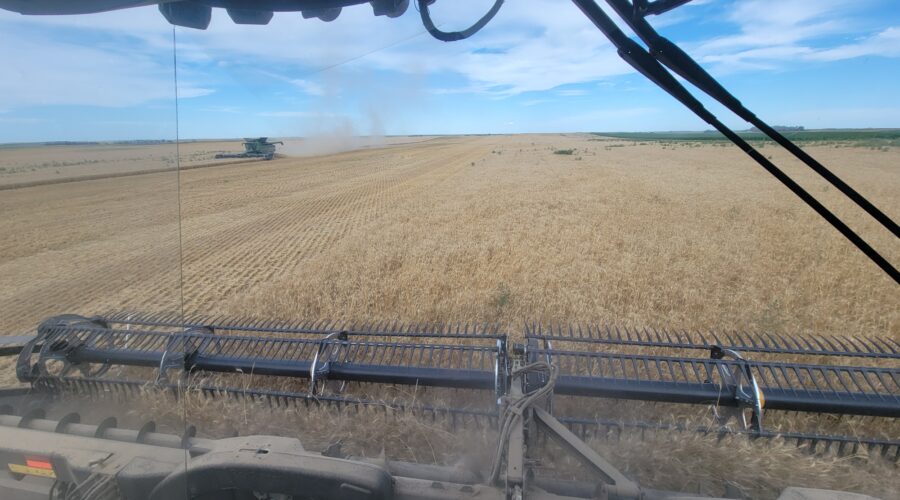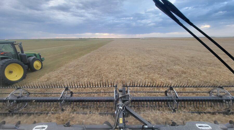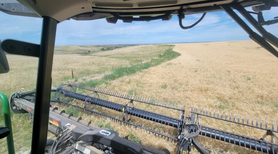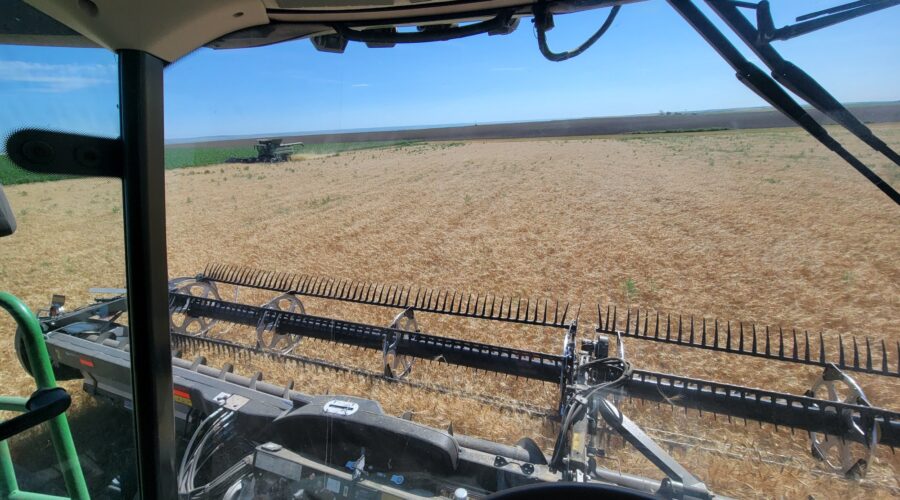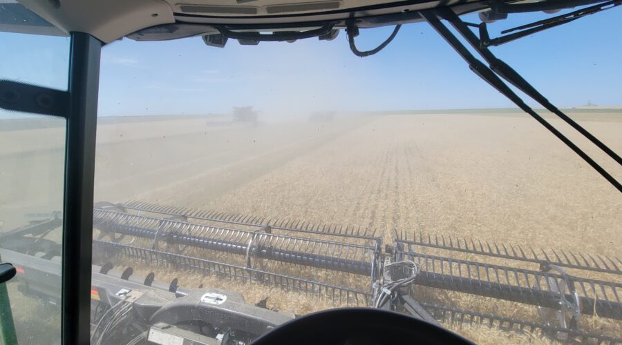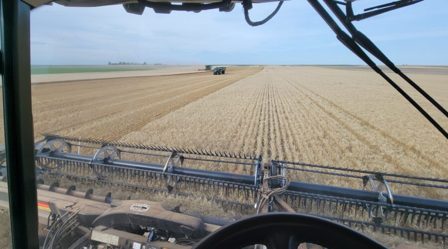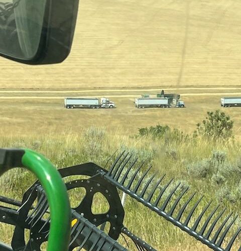 We’ve got six combines in Montana harvesting wheat. The yields have been good. They’ve been using pickup headers for swathed wheat. Some of it’s been yielding over 100 bushels per acre. When we finish here we’ll be moving up to the Dakotas.